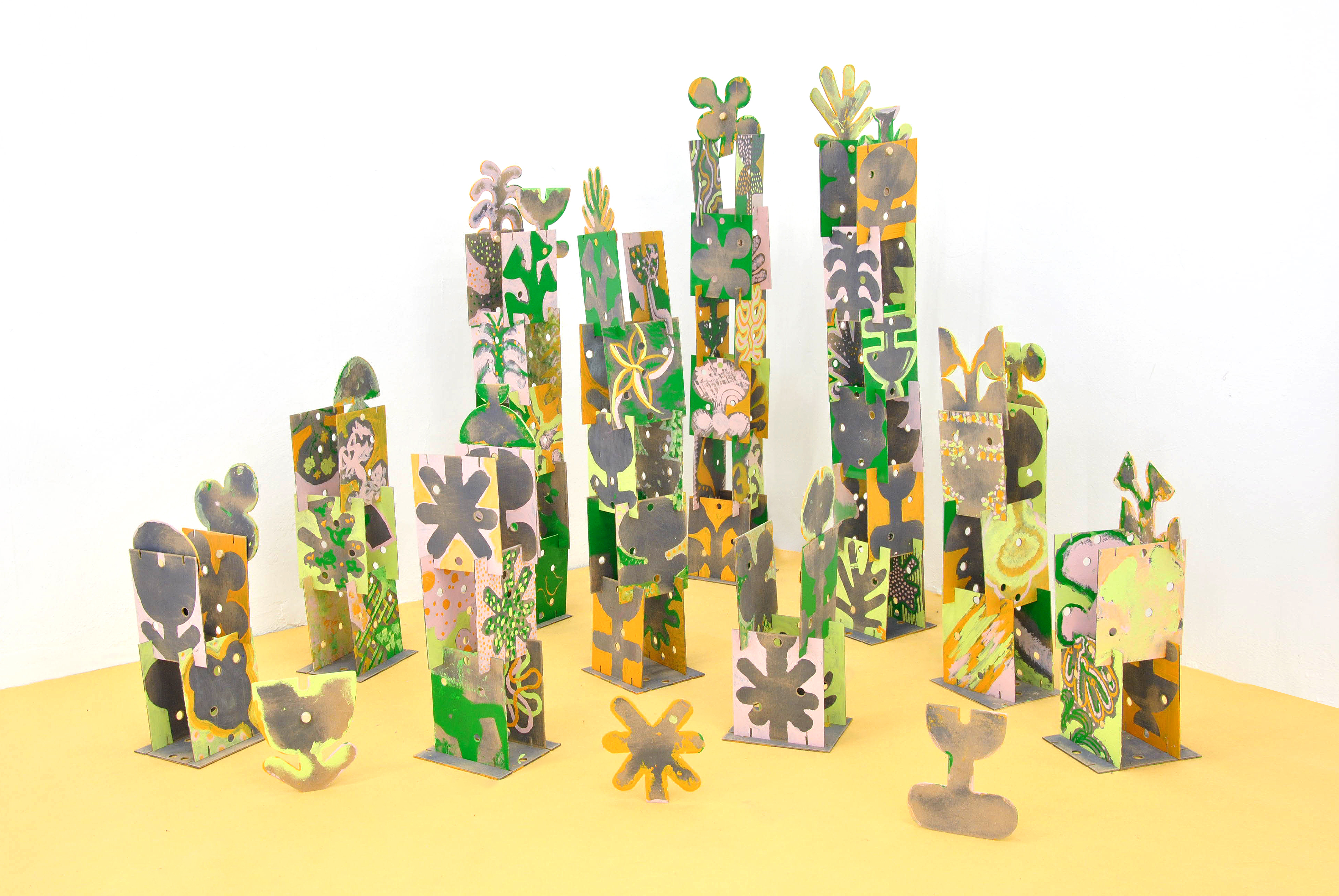 A través de un sistema de piezas modulares y una serie de 18 plantillas-plantas, diseñamos una dinámica de arte interactivo para dar vida a nuestro jardín.